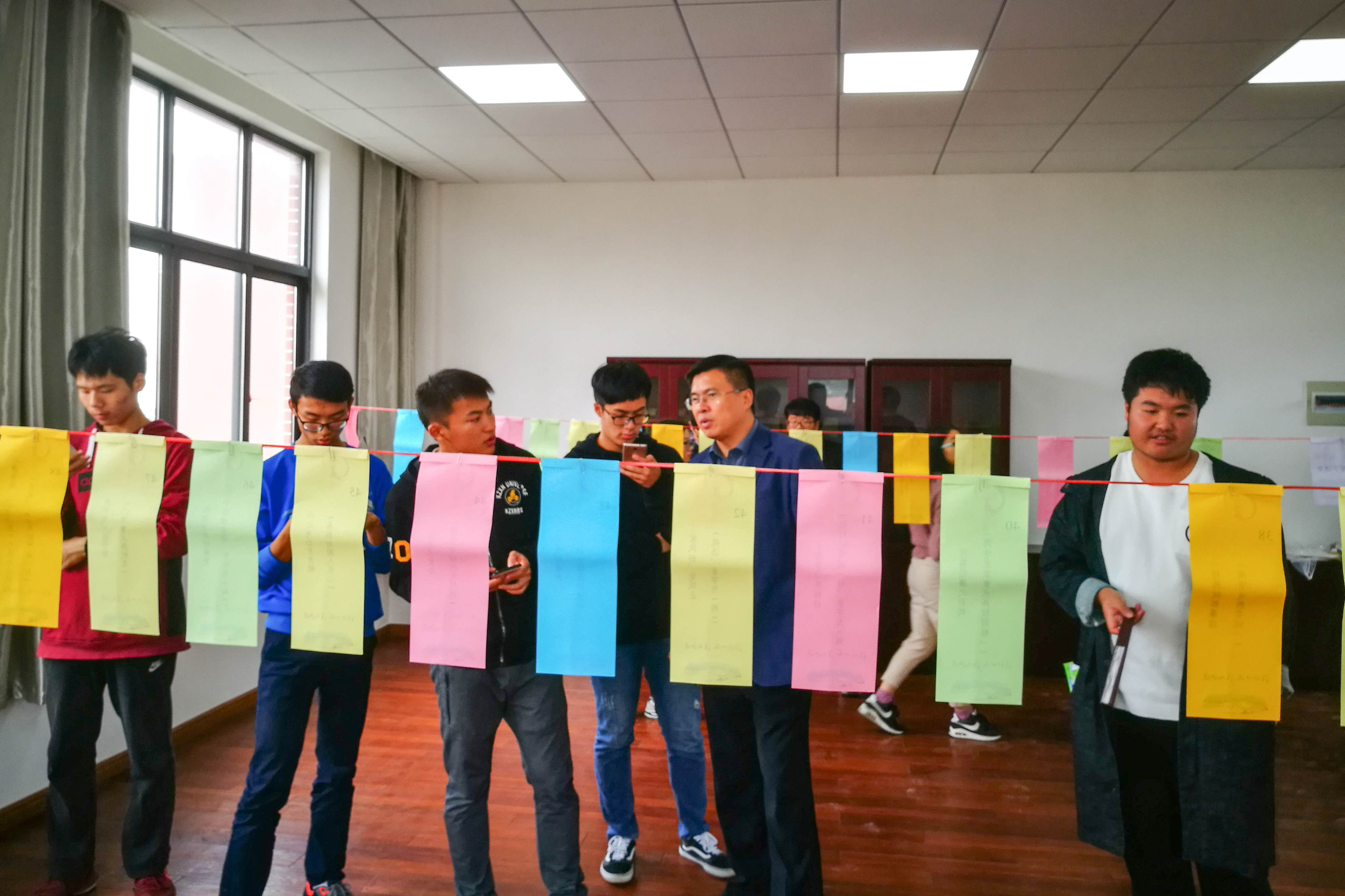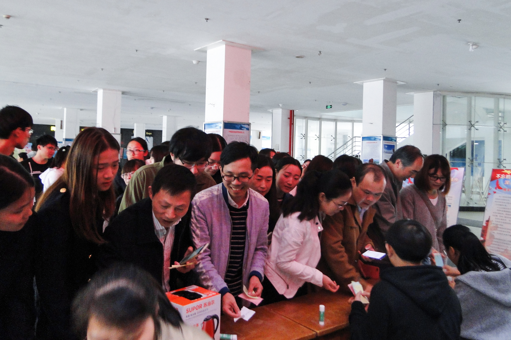 党建文化节暨廉政文化月开幕式后,师生们现场参观了“不忘初心 牢记使命”板报展览,并踊跃参加在图书馆、学生社区和岱山校区同时进行的党建廉政谜语竞猜活动。(宣传部)