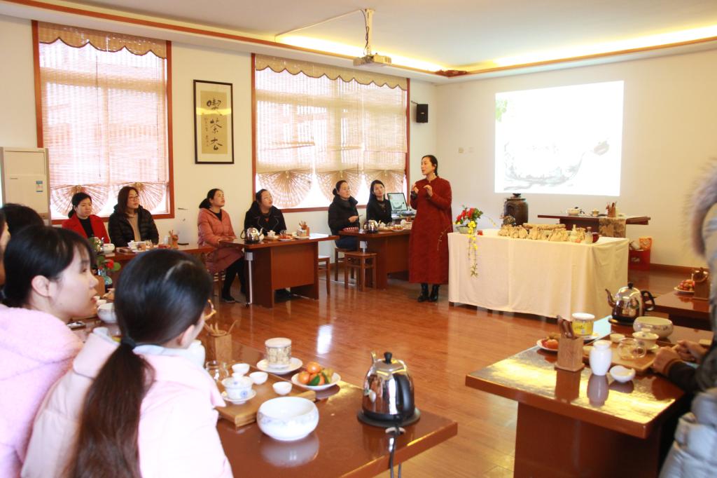 3月7日中午,校妇委会、女职委在教学楼3506茶艺室举办了茶艺培训活动,李琼老师讲述了茶道的要义和茶艺表演的精髓,现场传授盖碗茶的冲泡方法,具体讲解了翻杯、洗杯、注水、凉汤、赏茶、投茶、泡茶、出茶、敬茶等一整套流程的指法和动作要领。古朴的茶具在指尖舞动出诱人的茶趣,茶香氤氲,沁人心脾。(金巧娟)