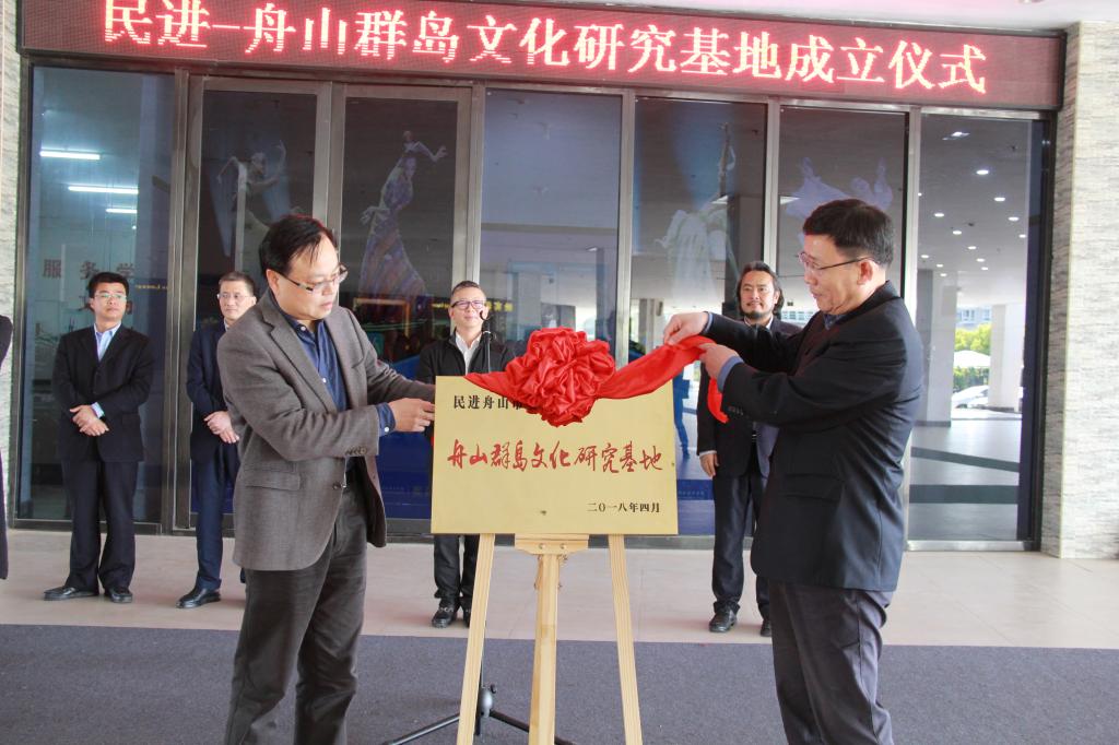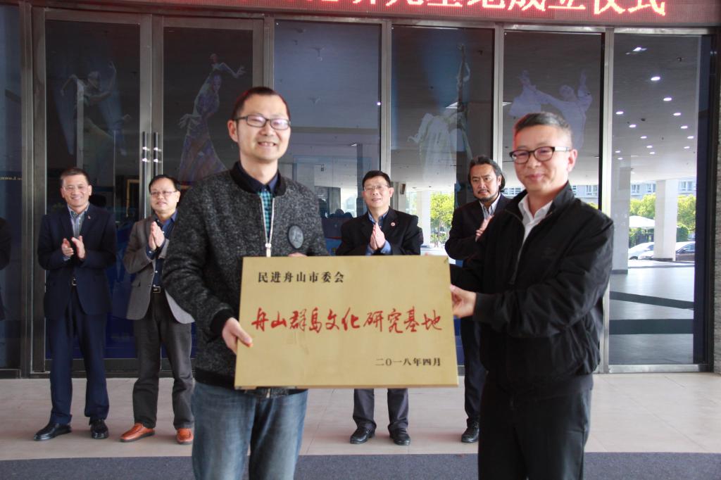 仪式现场,徐智忠副部长和胡国光副书记共同为“舟山群岛文化研究基地”揭牌,贝璐国主委为研究基地授牌。