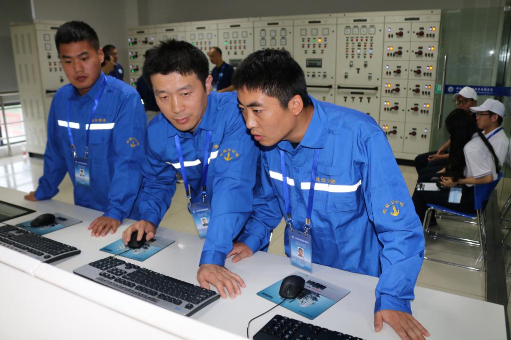 主机故障排除(企业队8-13组)在学校国际海员培训楼轮机模拟器进行,6支企业队分别由1名轮机长和2名轮机员组成代表队,在10分钟内,团队协作,对裁判长设置的故障进行分析和排除,并按要求依次向裁判组进行报告。不同于上一届的瘫船启动赛项,本届单独考察主机故障排除环节,时间缩短,更注重考量的是各参赛队团队合作精神,也对选手的判断力、敏捷程度有了更高的要求。27日下午,该赛项还将进行企业队1-7组的比拼。