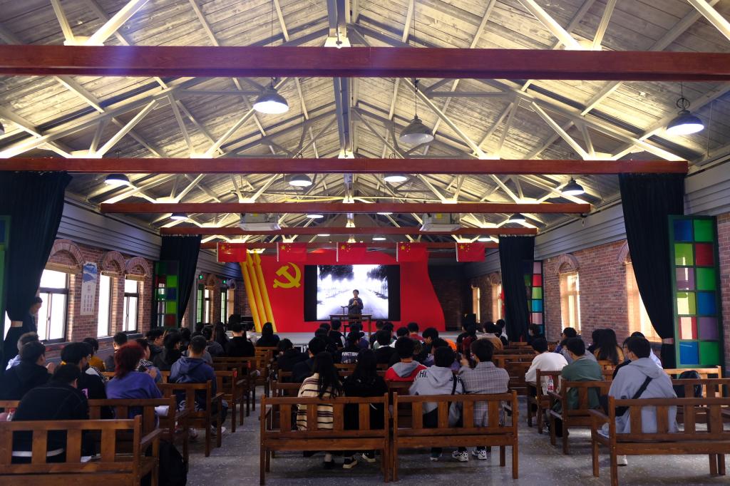 挂牌仪式结束后,师生一行共同参观了《军港之夜》歌曲创作纪念室、蚂蚁岛艰苦创业纪念室、人民公社旧址,观看了影片《走在人民公社大道上》,聆听了蚂蚁岛老党员讲述建国初期蚂蚁岛人民的艰苦创业历程,并亲身体验了织渔网、搓草绳等项目。