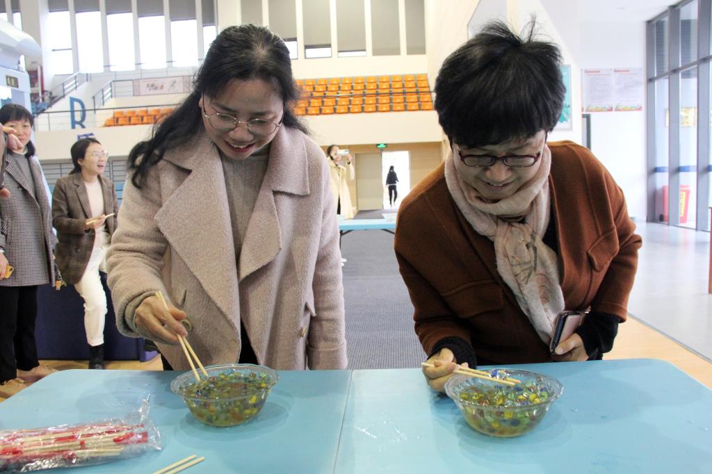 本着“友谊第一、比赛第二”的原则,以二级工会为单位组队的代表队进行了立定跳远、1分钟跳绳、平板支撑、飞镖、男子引体向上、男子俯卧撑、女子仰卧起坐、 女子夹玻璃球等8个个人项目和双腿夹排球接力、同心鼓、跳长绳、拔河等4个团体项目的比赛。虽然学校运动场建设场地受限,但依然挡不住全体教职工积极参与比赛的火热之情。教职工们热情高涨,篮球场上加油助威,呐喊声此起彼伏,运动员们奋力拼搏、团结协作,表现出良好的团队合作精神和强烈的集体荣誉感。
