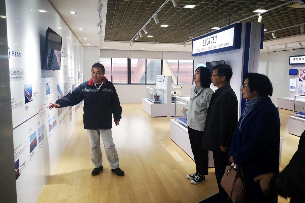 在船模展厅,佐藤二郎介绍了常石集团的企业历史、主营船型和主要技术发展等基本情况。