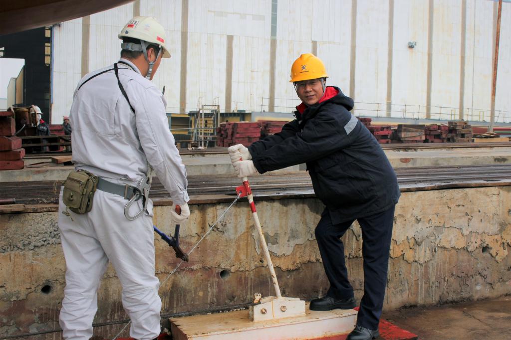 应佐藤二郎的邀请,吴中平校长一行还参加了首制4.2万吨级散货船的下水仪式,随着吴中平校长扳起启动开关,新船缓缓下水,双方共同见证这一重要时刻。(图文/蒋仲仁)