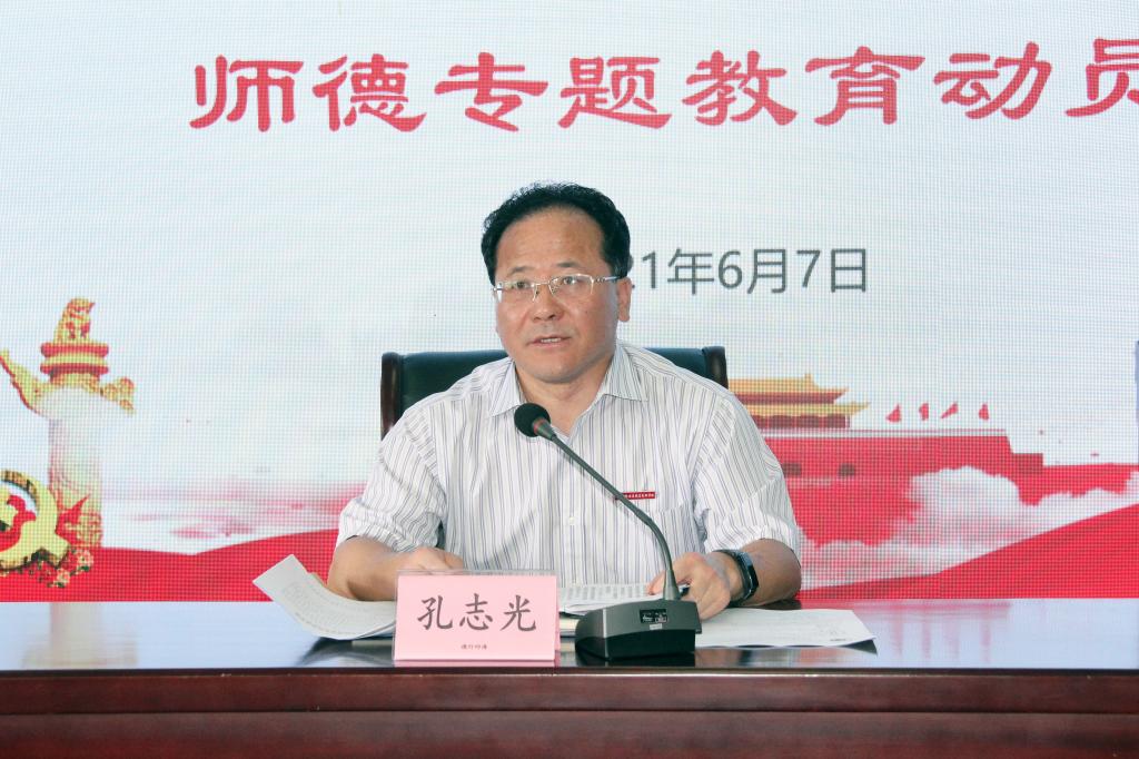 6月7日下午,学校在行政楼401会议室召开师德专题教育动员会,传达学习教育部、省教育厅和学校开展师德专题教育工作相关精神,动员部署学校师德专题教育工作,进一步引导广大教师坚定理想信念、厚植爱国情怀、涵养高尚师德。学校相关职能部门负责人、各党总支(直属支部)书记参加会议。会议由党委委员、组织部(人事处)部长(处长)黄承主持。
