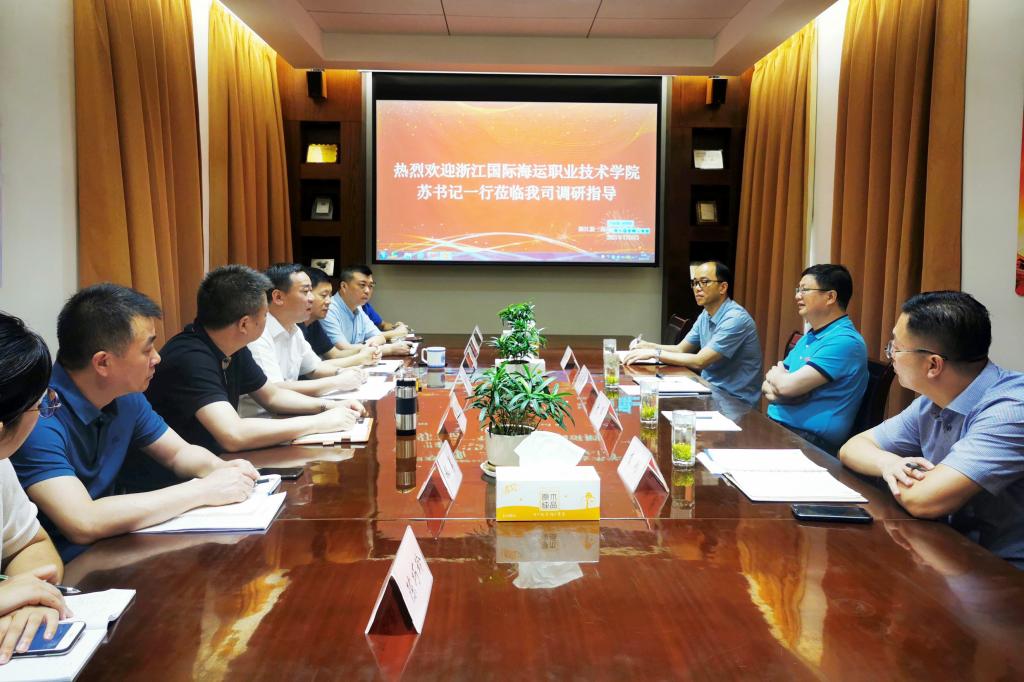 7月6日,校党委书记苏为泽带领学校党委办公室(院长办公室)、科研处、航海工程学院等相关部门负责人到浙江新一海海运有限公司进行调研交流。浙江新一海海运有限公司党委书记、董事长张辉组织座谈会并进行了热情接待。