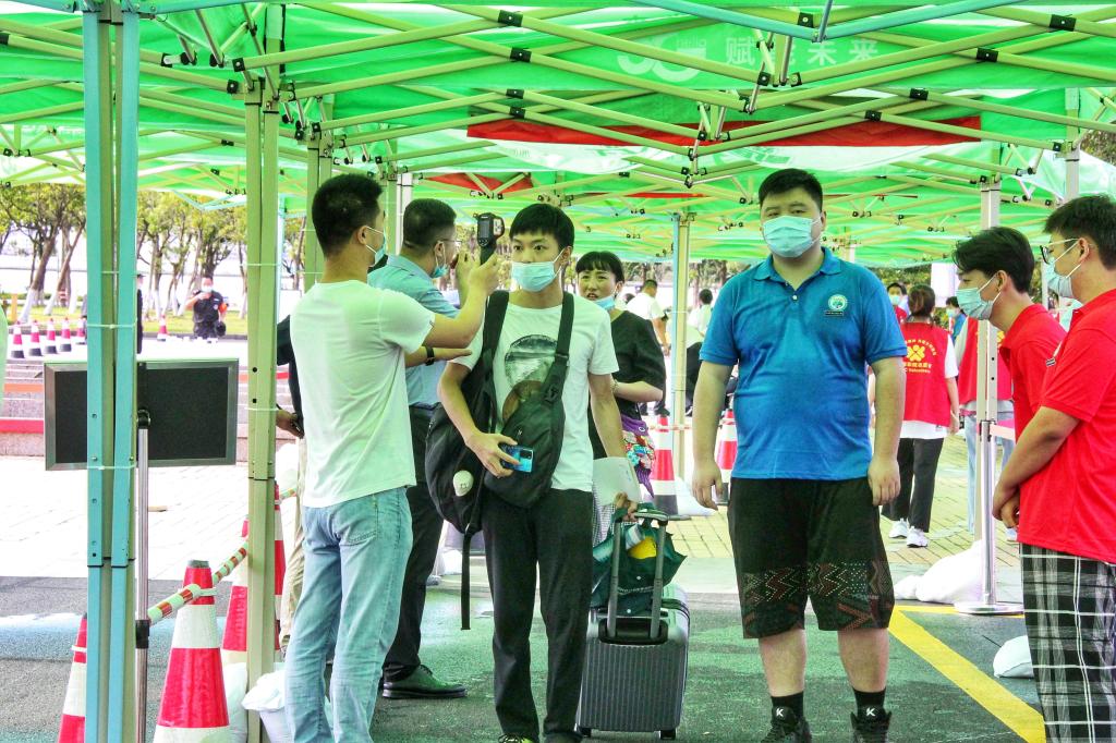 测温、亮码、身份核验、入校,“易班”迎新系统的启用进一步精简了报到流程,新生报到信息平台对迎新数据进行了实时跟踪,师兄师姐则全程陪伴,帮助新生顺利报到和运送行李。