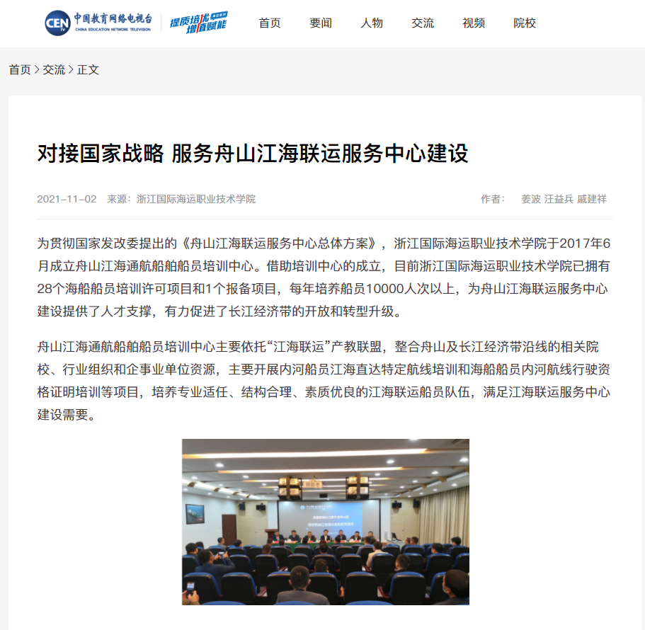 近日,由学校党委宣传部、教务处牵头组织申报了6个教育部提质培优宣传典型案例,其中航海工程学院姜波等老师提交的“对接国家战略 服务舟山江海联运服务中心建设”、海洋装备工程学院卓宏明等老师提交的“无人机‘飞’起乡村振兴梦”等2个案例成功入选宣传典型案例,在中国教育网络电视台发表。