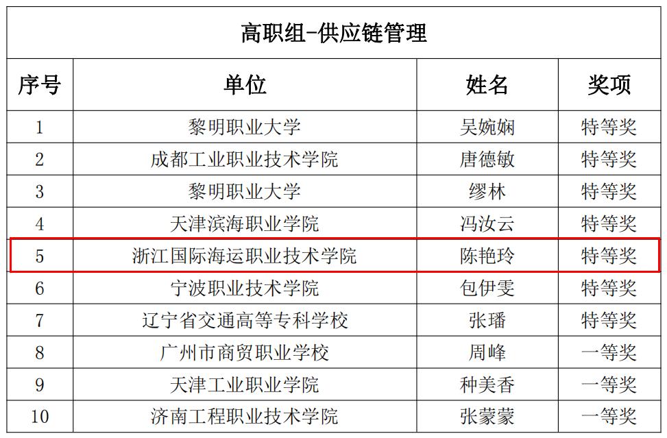 本次竞赛是由中国物流与采购联合会和全国物流职业教育教学指导委员会主办,由专业实践、教学设计与实施和模拟授课与答辩三项内容组成,通过“做-备-教”的耦合设计,立体化、全过程评价教师数字化专业实践能力、创新性课程设计能力、信息化教学实施能力。本次教师获奖既是现代物流专业应对“数字要素驱动”、“数字化效率提升”数字化转型方面做出的探索与积累,也是我校鼓励教师直接参与技能竞赛的成果。(港口管理学院)
