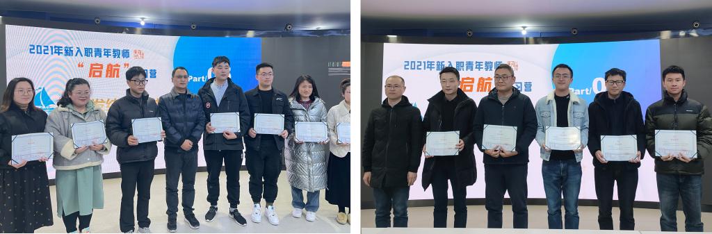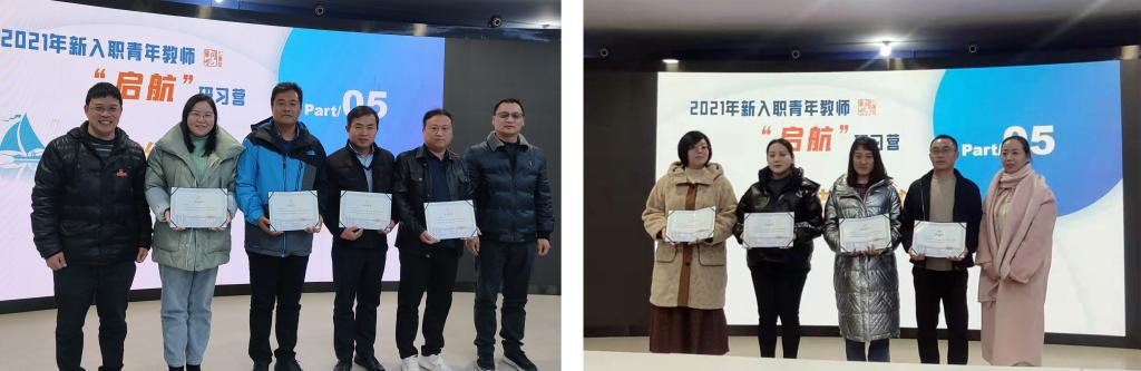 本次“启航”研习营采用校本培训与在线学习、理论授课与实践指导相结合的方式,对每个研习环节设置专题实践作业并进行过程性考核,强调对新入职教师的课程整体设计、课堂单元设计、课程资源建设、讲课说课等教师基本教学能力的培训。经过综合测评,为达到培训考核要求给予结业的25名教师颁发了结业证书。