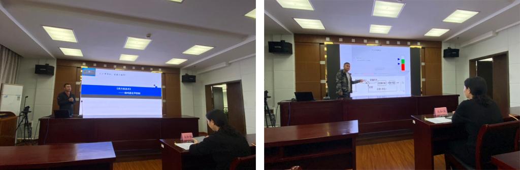 在展示交流环节中,参训教师分为三组,结合上周线上微格演练的汇报情况,分别在自己教授课程连续八课时的教学设计中选取了某个局部的教学片段,或新知讲解或示范演示或作业点评或课堂总结,逐个进行了8分钟左右的课堂无生教学展示交流,充分展示了本次“护航”成长研修班的培训成果。教学展示汇报结束后,校外专家组分别从课件制作交互、信息化教学、无生展示重难点、课程思政融入等方面对教师们的教学展示进行了细致入微的点评指导。