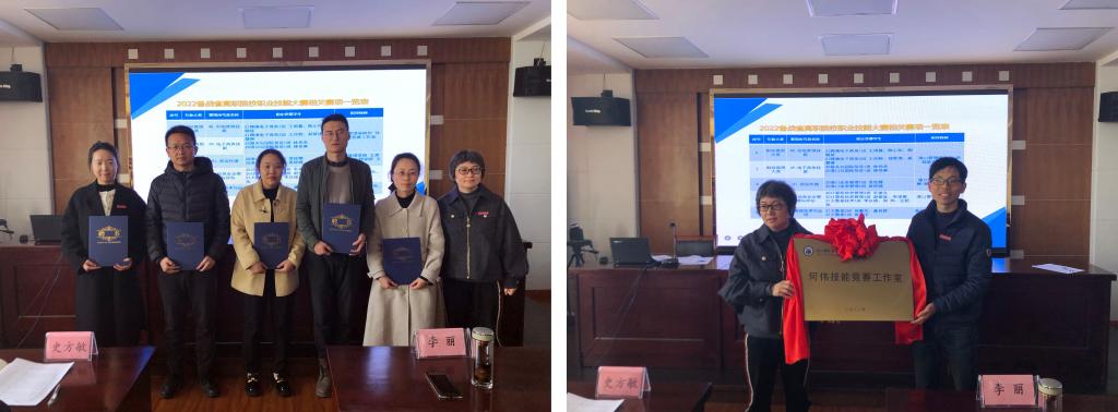 李丽副校长为各赛项指导老师颁发了聘书,并为今年承担“市场营销”和“电子商务”两项赛项的何伟老师授牌,李丽副校长对各赛项指导老师和参赛学生备战省技能大赛的辛勤付出予以了肯定,希望大家再接再厉,力争在今年省赛中取得好优异成绩。