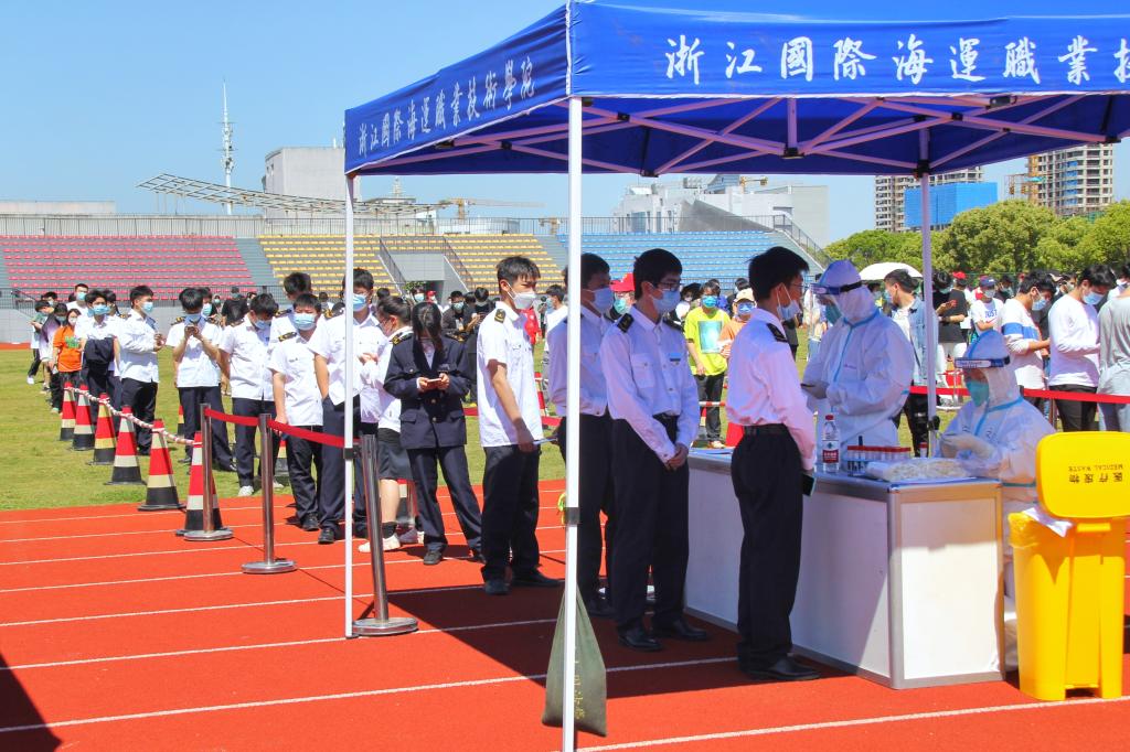 为全面排除五一假期期间疫情防控风险,根据舟山市疫情防控统一部署,在做好校园常态化疫情防控基础上,5月6日,学校组织全体在校师生员工开展了全员核酸检测,筑牢校园防疫“安全线”。