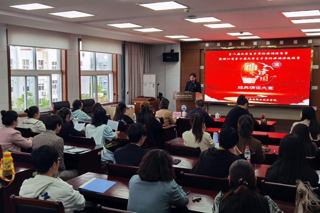 诵读古今经典,书写时代华章。为喜迎党的二十大,弘扬中华优秀传统文化,歌颂党的百年光辉历程,守望初心,提高大学生的语言文学素养,学校第八届中华经典诵读大赛(个人赛)于5月17日晚在行政楼401会议室顺利举行。学校邀请了国家级普通话测试员姚丽凤、蒋君怡、荣海涛担任评委老师,共有来自学校6个二级学院的24名选手参加竞赛。