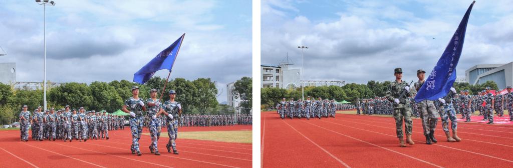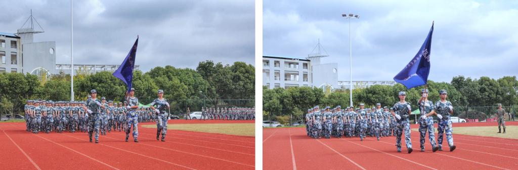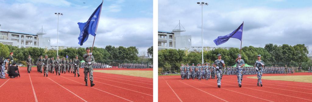 在庄严肃穆的升旗仪式后,2022级新生进行了分列式汇报表演。伴随着激昂热烈的军乐声,航海工程学院、海洋装备工程学院、港口管理学院、海洋旅游学院和国际教育学院的参训新生方阵依次排着整齐的方队,迈正步、行军礼,从主席台前经过接受检阅。同学们阵容整齐、口号响亮、气势昂扬,展现出了优良的团队素质和精神风貌。