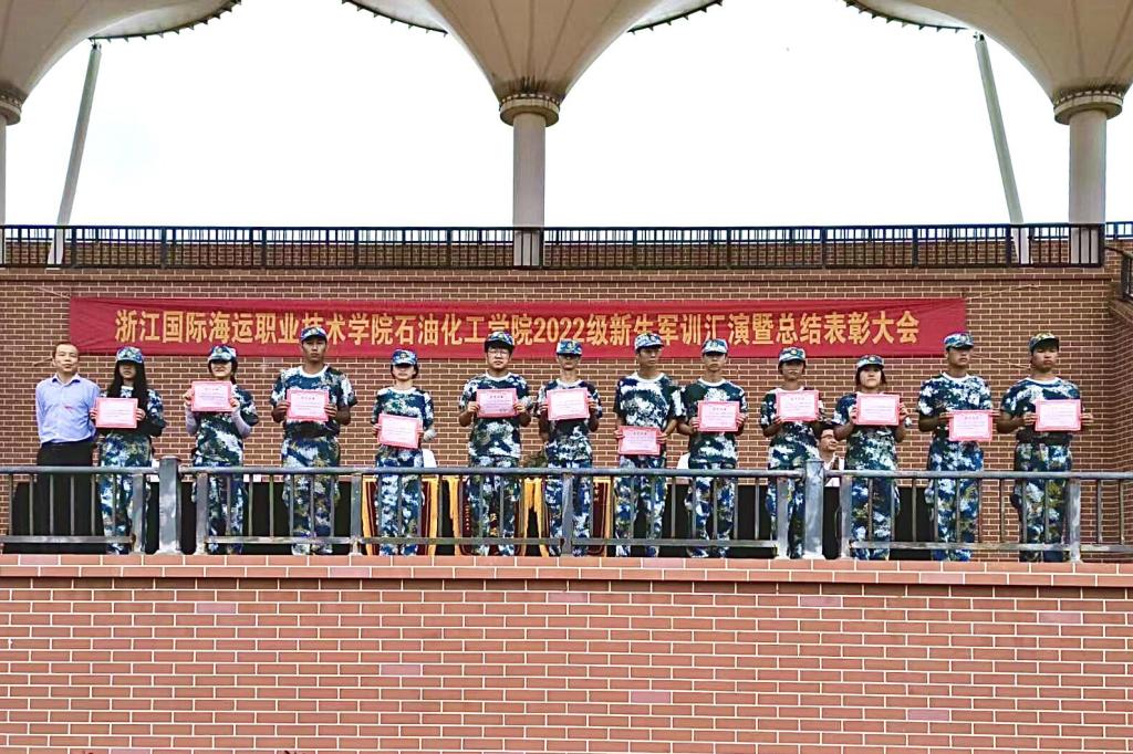 当天上午,岱山校区也在田径场顺利举行了2022级新生军训汇演暨总结表彰大会,石油化工学院全体班子成员、承训部队领导、全体参训师生参加。(学生处、石油化工学院)
