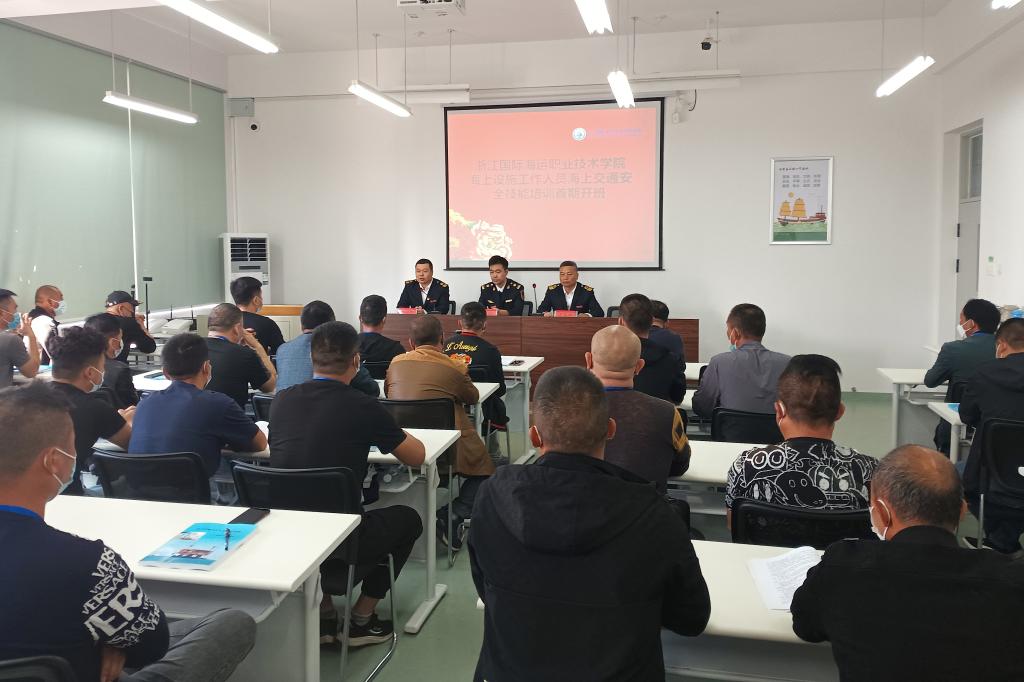 11月10日上午,海上设施工作人员海上交通安全技能培训开班仪式在学校社会服务楼顺利举行。舟山海事局船员管理处副处长蒋岩,航海工程学院院长汪益兵、副院长张一久出席了开班仪式,首期培训班的33名学员和航海工程学院教师代表共同参加。