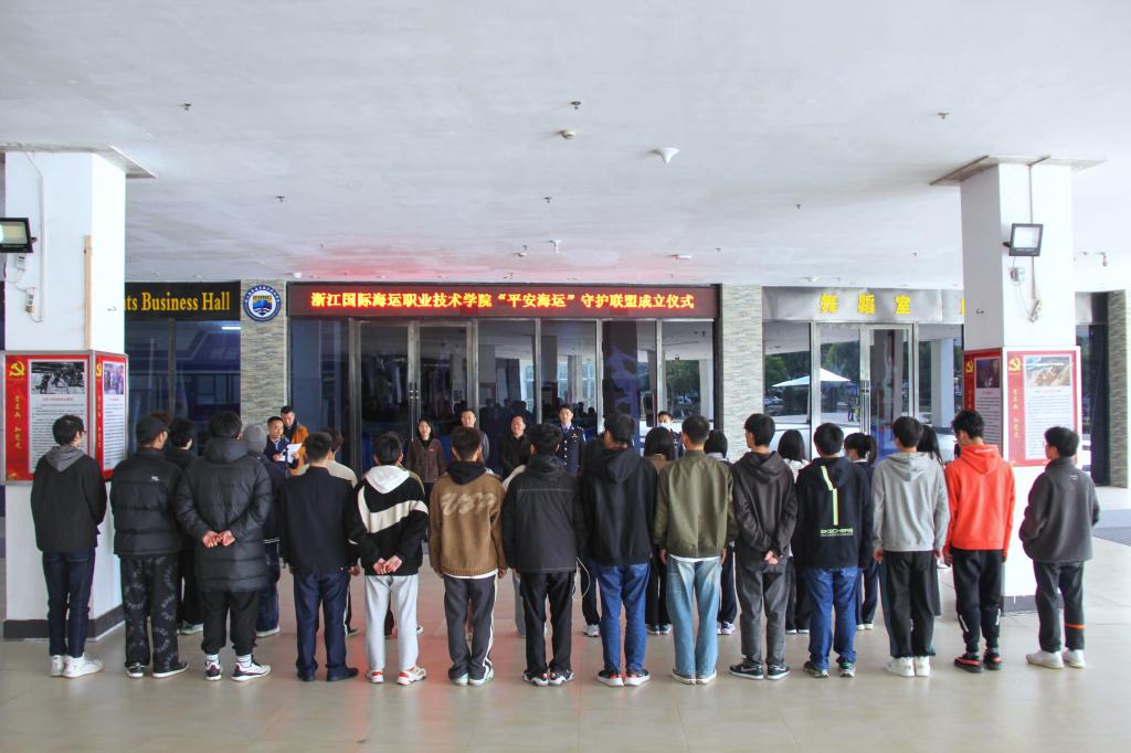 12月7日下午,学校“平安海运”守护联盟成立仪式在图书馆一楼大厅举行。学校党委副书记孔志光,新城公安分局党委委员、副局长张泽,新城公安分局政保大队长鲁斌,临城派出所副所长毛乾匡等出席仪式。保卫工作部、校团委等部门负责人,“平安海运”守护联盟学生社团成员参加。
