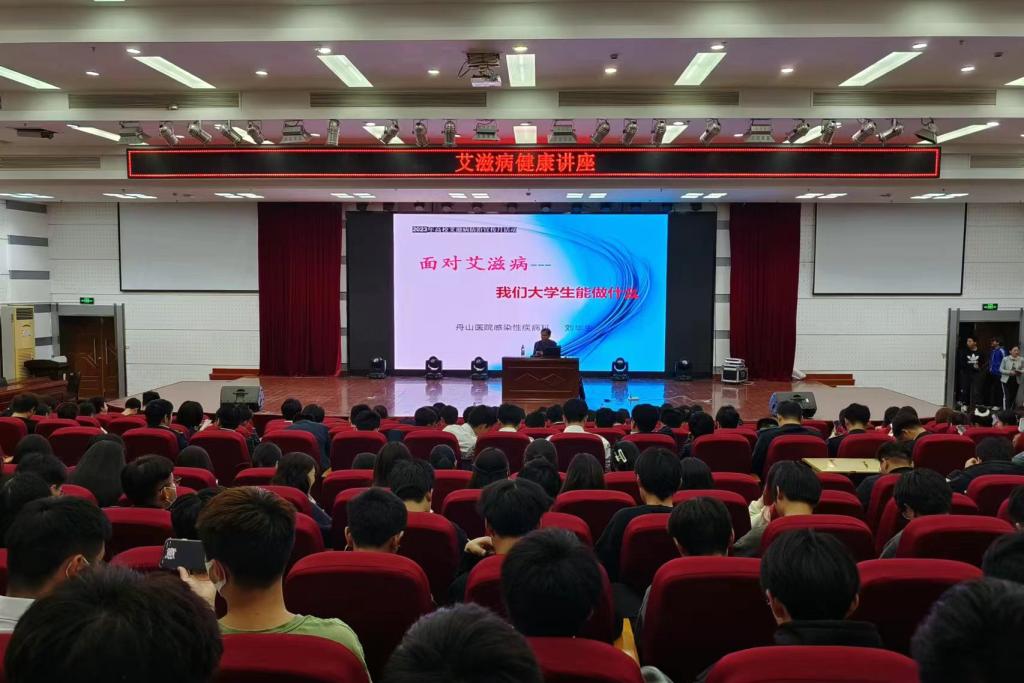 同日,学校特邀舟山医院传染疾病科刘华生主任医师在图书馆四楼报告厅为学生开展防艾健康科普讲座。讲座由后勤产业处公共卫生科科长金曙敏主持,各二级学院450余名学生参加。