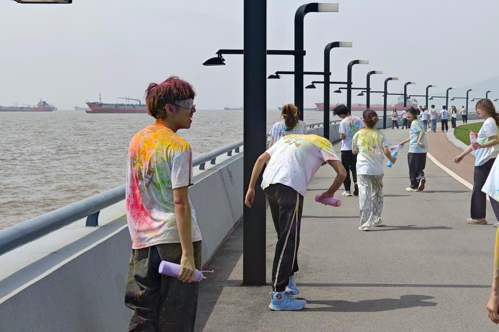 待工作人员发令后,大家围绕揽月湖开跑,并相互泼洒彩色玉米粉表示祝福。根据“谁的微笑最灿烂,谁身上的玉米粉最多”,活动评选出了冠、亚、季军。来自我校现代港口贸易学院的张佳伟荣获季军。
