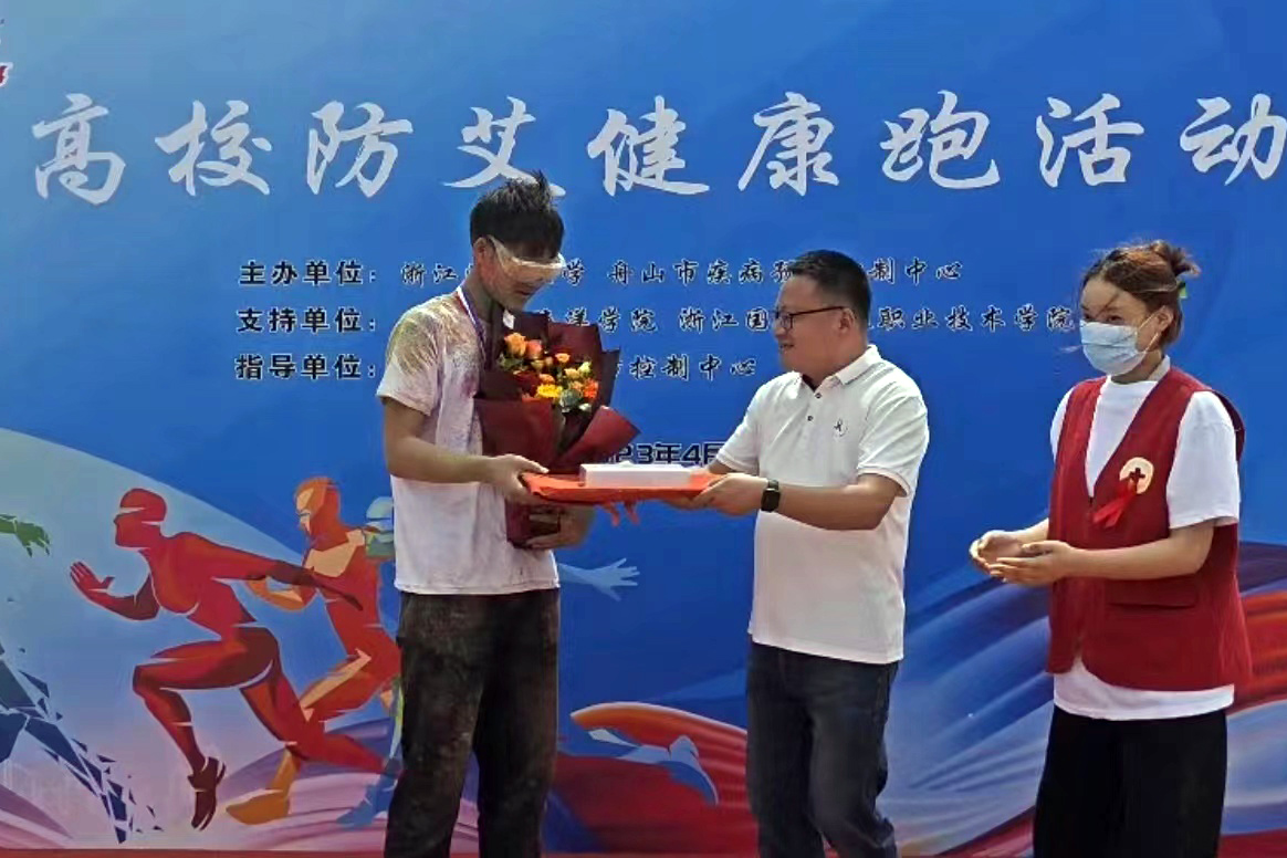 为激发高校青年主动参与艾滋病防控工作的热情,4月18日上午,我校与舟山市疾控中心、浙江海洋大学红十字会、浙江大学舟山校区、舟山医院联合举办了“防艾健康跑”活动。