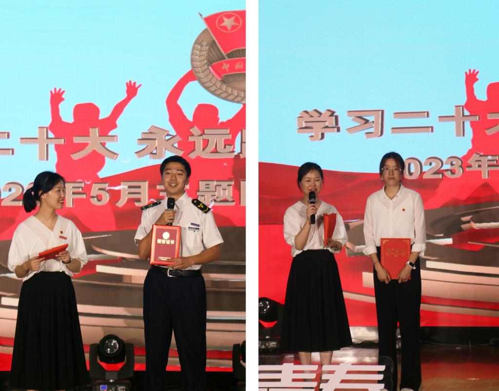 会议对获得中国大学生自强之星、浙江省优秀共青团员、浙江省第十八届“挑战杯”大学生课外学术科技作品竞赛、第九届浙江省海洋知识创新竞赛海洋科技创新类竞赛、2022年度浙江省高校思政微课大赛、舟山市“两优两红”、校级十佳之星、校级“两优两红”、校级十佳社团、优秀社团指导老师等10余项荣誉的集体和先进个人进行了表彰。省“挑战杯”大学生课外学术科技作品竞赛获奖选手蒋苏杭分享了备赛和参赛的体验,市级优秀共青团干部孙丹晔立足自身共青团工作的经历分享了心得体会。
