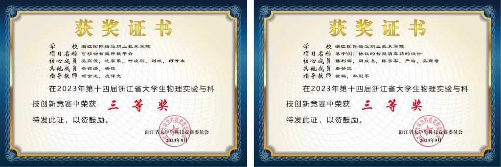 浙江省大学生物理实验与科技创新竞赛是由浙江省大学生科技创新竞赛委员会主办的省级一类学科竞赛。该竞赛激发了我校学生学习物理知识的积极性,以赛促教,以赛促学,培养了学生的创新思维与创新能力,提高了学生运用物理知识解决实际问题的能力。(海洋装备工程学院)