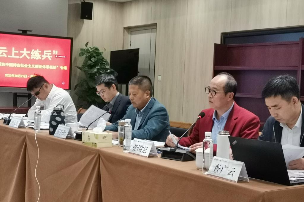 本次“云上大练兵”活动是根据《教育部办公厅关于开展第三届全国高校思想政治理论课教学展示活动的通知》精神安排,浙江理工大学教授、教育部高校思政课教指委《概论》课分教指委委员、浙江省“毛泽东思想和中国特色社会主义理论体系概论”教学研究会会长渠长根出席并担任评委组长。全省经选拔产生的5位老师参加本次磨课会,其中本科组3位,高职组2位。何丽丽老师备赛磨课的内容为马克思主义中国化时代化。