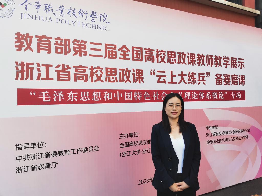 10月21日下午,马克思主义学院思政课教师何丽丽参加由金华职业技术学院承办的教育部第三届全国高校思想政治理论课教学展示备赛磨课《毛泽东思想和中国特色社会主义理论体系概论》(以下简称《概论》)课专场活动。