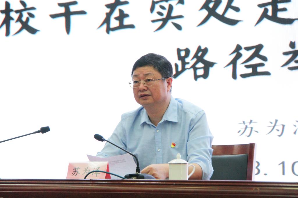 苏为泽书记从深刻领悟习近平总书记考察调研安排中蕴含的背后深意、充分认识习近平总书记考察浙江重要讲话的重大意义、准确把握和运用习近平总书记重要讲话中蕴含的立场观点方法、深入思考我校干在实处走在前列勇立潮头的路径举措等四方面展开,主题鲜明、内涵丰富。他强调,全校上下要迅速兴起学习宣传贯彻热潮,将学习贯彻落实习近平总书记考察浙江重要讲话精神作为主题教育的重大学习安排,在本次读书班中作为首要内容,作为学校当前和今后一个时期的首要政治任务。