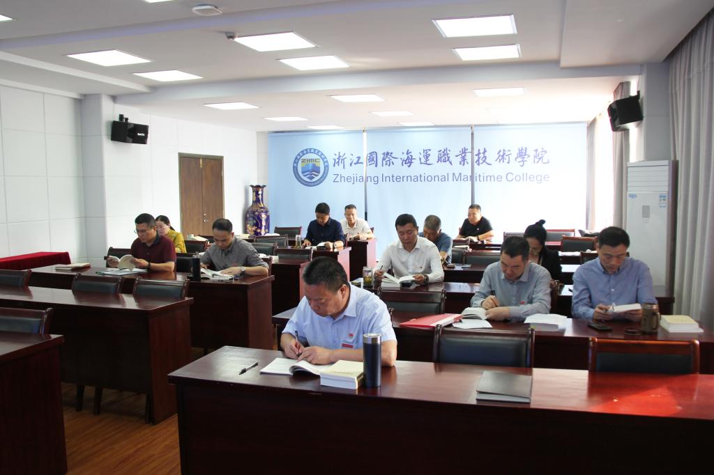 现代港口贸易学院院长王贵斌、海洋旅游学院院长俞海平、国际教育学院院长吴旭光、石油化工学院院长杨加力、东海教育学院院长苏峰、文化体育部部长王智明、教务处处长郑燕华、计划财务处处长王培凤、后勤产业处处长王建军、数字中心主任舒伟权分别围绕主题教育学习内容,理论联系实际,谈认识、讲体会、说打算,紧扣主题,深入思考,集思广益,在“交流研讨”中凝聚了共识。