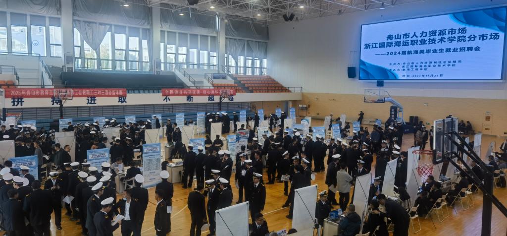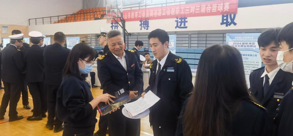 下午两点,由舟山市人力资源和社会保障局和我校共同主办,航海工程工程学院承办的2024届航海类毕业生现场招聘会在体育馆举行。毕业生们着装整齐,在学业导师、专业教师的指导下,手持精心准备的简历和自荐信,积极与用人单位招聘人员洽谈,推荐自我。现场气氛活跃,大部分毕业生与用人单位达成了初步就业意向。
