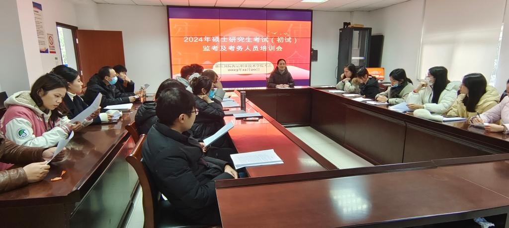 12月20日下午,为保证2024年全国硕士研究生招生考试各项工作安全、科学、规范、有序开展,教务处组织召开硕士研究生招生考试考务工作培训会。会上,教务处处长郑燕华介绍了本次考试的总体情况,对考试工作方案进行了详细解读,从考试安排、监考工作要点及操作流程、考务工作人员工作职责要点以及突发事件应急处理等方面作了详实的业务培训。