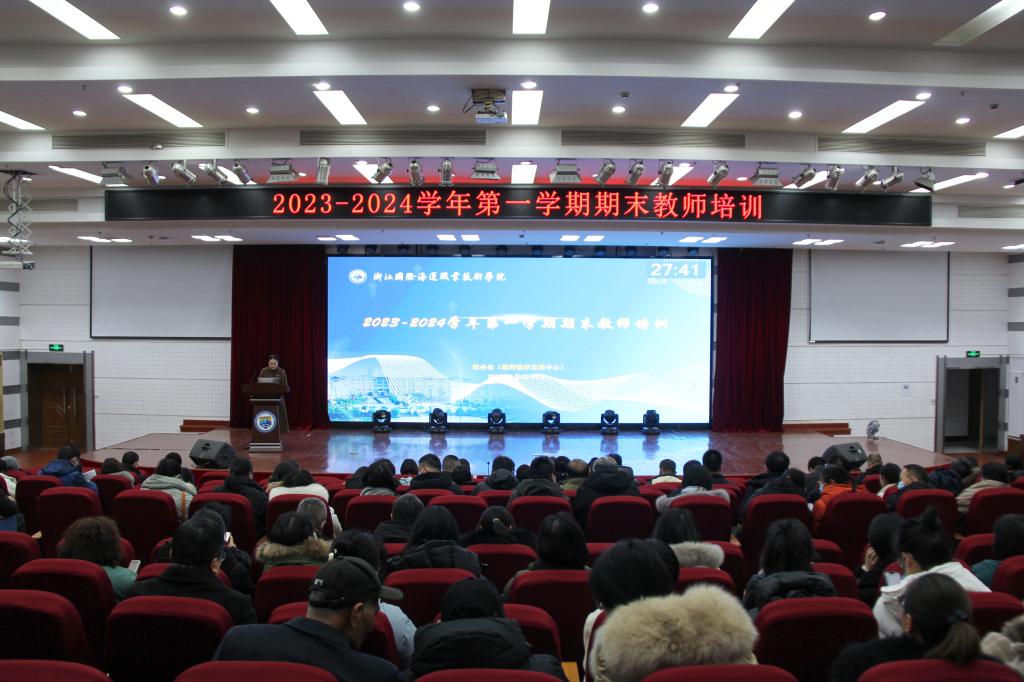 为深入学习贯彻党的二十大精神,推进“三全育人”、数字化有效教学及高水平、结构化教师教学团队建设,深化“三教”改革、产教融合,拓宽教职工职业教育改革与创新的思路和方法,提高教职工的综合素质和能力,1月22日,学校在图书馆四楼报告厅举行了2023-2024学年第一学期期末教师培训会议。校领导、各教学单位负责人、全校专任和兼课教师参加了培训会议。培训由教务处处长郑燕华主持。