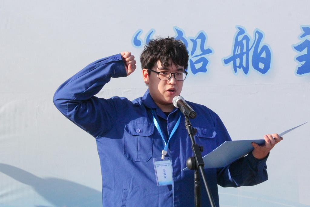 海洋装备工程学院的王俊钧同学代表全体参赛队员发言。他表示在本次竞赛中将以饱满的精神,认真参赛,展现良好的竞技精神和道德风尚;严格遵守比赛规则,服从裁判,尊重对手,保证大赛顺利进行;认真对待比赛,赛出水平,赛出风格、赛出成绩。