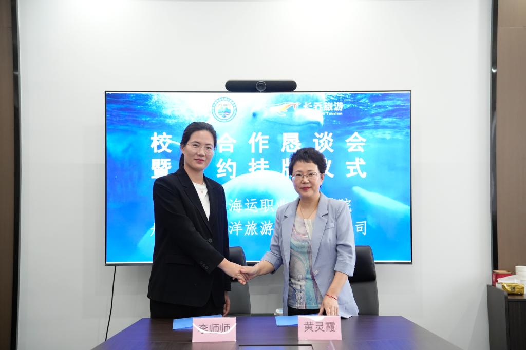 双方在和谐愉快的恳谈中开启校企合作新篇章。(海洋旅游学院)