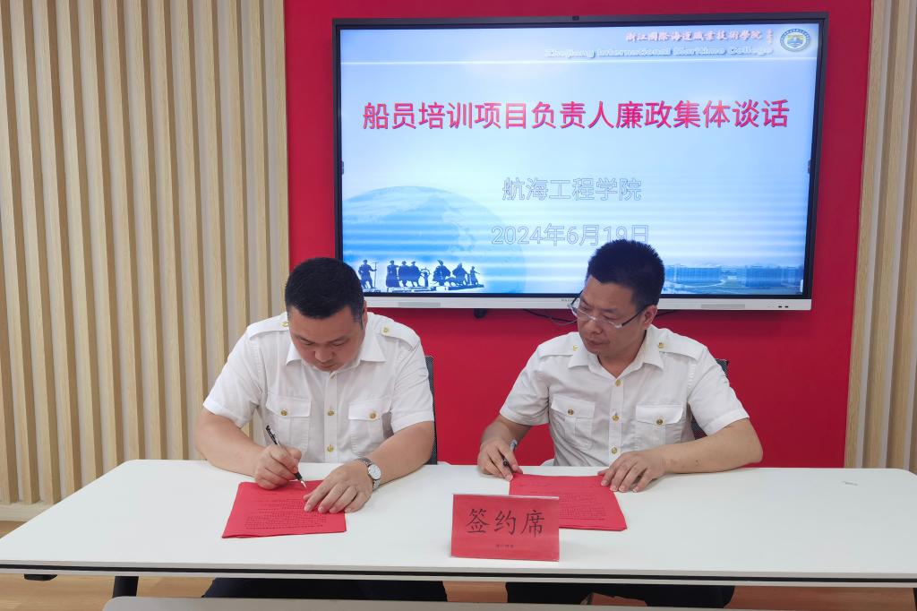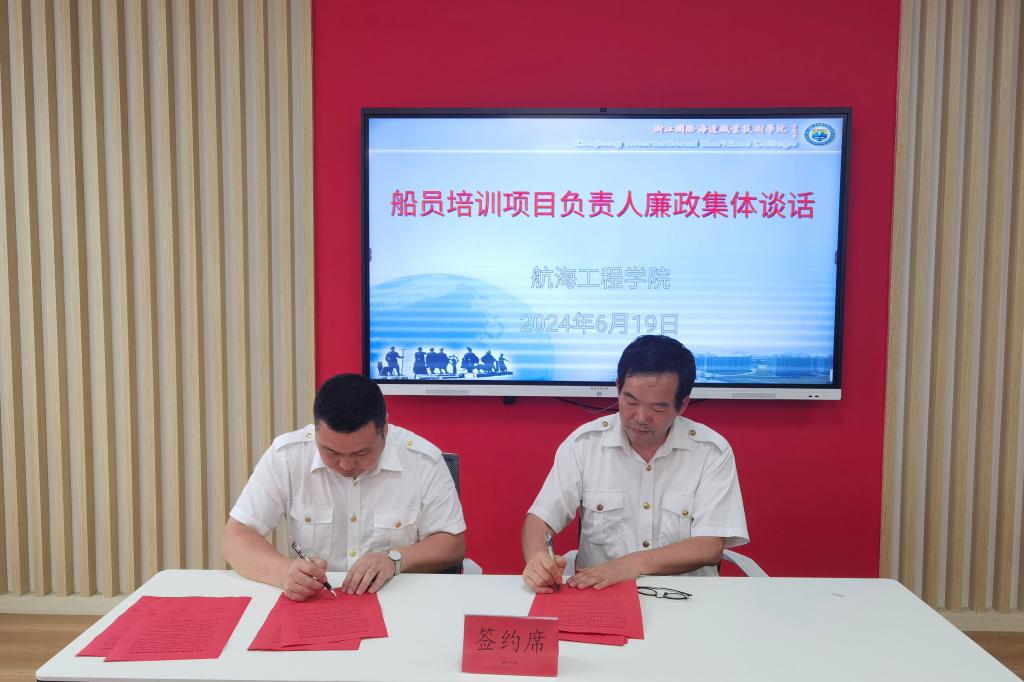 最后,培训副院长与各培训项目负责人签订了廉政建设目标责任书。(航海工程学院)