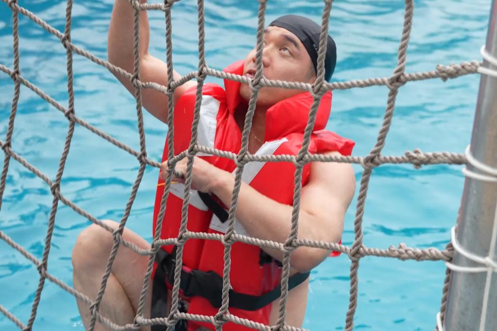 水上求生是本次比赛最有竞技性、观赏性的项目。比赛中,队员们面对5米高的跳台,屏住呼吸,沉着冷静,竭尽全力游向目标,拼的是选手们的体力和毅力。