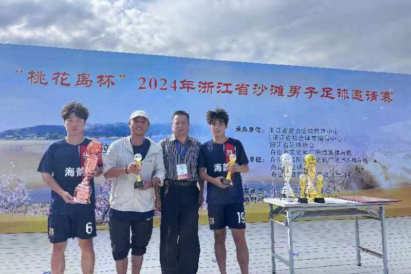 10月11日-13日,由浙江省体育局主办,浙江省智力运动管理中心、浙江省足球协会和舟山市文化和体育旅游局承办的2024年浙江省沙滩男子足球邀请赛在普陀区桃花镇举行。来自全省各县、市(区)足球协会、体育俱乐部、相关高校共七支代表队70余名运动员参加了比赛。我校选派了由10名运动员组成的队伍参赛,由校党委委员、工会主席刘相担任领队,孙波老师担任球队主教练。