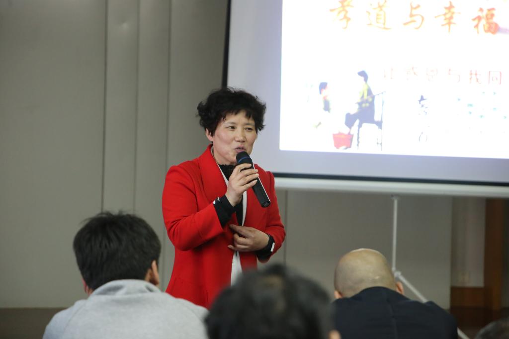 本次培训主题是《孝道与幸福》,学院特邀舟山市中华传统文化促进会常务理事、教务处处长李桂娟老师主讲。李老师以儒家文化为主体思想,讲解了孝道与幸福的关系。在培训课堂中,李老师提到以身作则、耳濡目染才是最好的教育。中华传统文化的核心是孝道,孝道是幸福之道,孝道又是美满和谐之道。当我们踏踏实实把孝道落实在我们生活的点点滴滴中时,幸福生活就已经开始起航了。整场讲座内容丰富,信息量大,兼具理论性、趣味性和严谨性,气氛活跃。