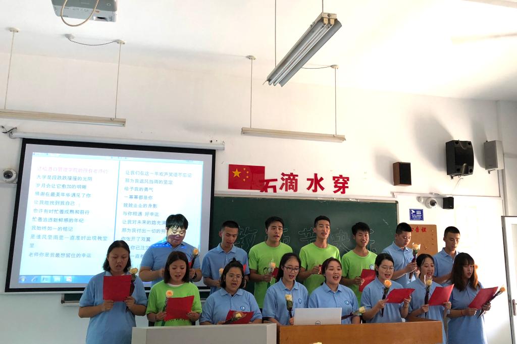 9月5日下午,港口管理学院团委学生会的干部们在学院第一次教职工大会上提前给全体老师过了一个简单又温馨的教师节。