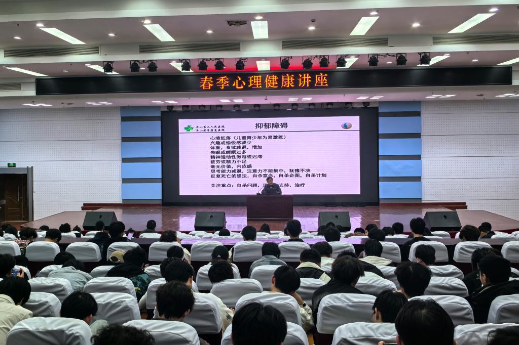 为帮助学生掌握科学的心理调适方法,提升心理素质和抗压能力,根据“让爱来,让碍走——179一起走”学生心理健康教育品牌——春季心理护航系列活动的安排,3月26日下午,学校心理健康教育中心邀请舟山第二医院精神科主任医师张景明为我校学生带来了一场《春季常见心理疾病的识别与应对》的心理健康知识讲座。全体在校班级心理委员、2024级寝室长参加了此次讲座。