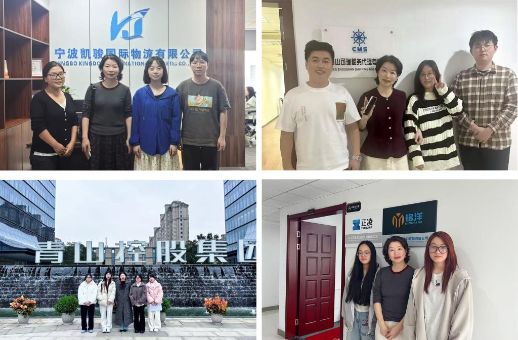 今年以来,国际教育学院党政班子携专业团队主任、实习指导教师组成走访团队,先后赴青山控股集团、舟山可瑞船务代理有限公司、舟山三通报关有限公司、舟山铭洋进出口贸易有限公司、舟山普陀东潮文化旅游发展有限公司海洲酒店分公司、浙江天闳国际物流有限公司、宁波凯骏国际物流有限公司等7家企业开展走访调研与座谈交流,旨在深入了解学生实习状况,推动校企合作迈向新高度。