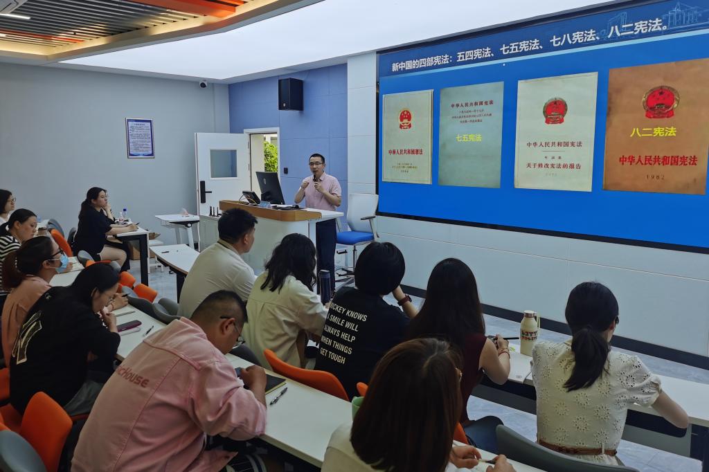 近日,校党委学工部在海德楼4117教室组织开展“深入学习贯彻全国两会精神和全省教育强省建设大会精神专题培训会”。市人大常委会研究室副主任郭振兴担任主讲,学工部全体人员,各二级学院党总支副书记、辅导员、班主任及学生干部代表等百余人参会。