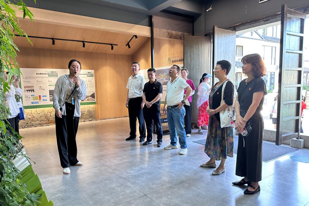 在南洞艺谷党建广场,全体党员面向党旗庄严宣誓,重温入党誓词。随后,讲解员介绍了当地乡村振兴工作开展情况,重点展示了生态治理、产业融合、文化赋能等方面取得的实践成果。党员们沿着习近平总书记视察足迹,先后参观了群众艺术创作中心、画春园、酒缸潭,通过实地走访,体悟“两山”理念的生动实践。