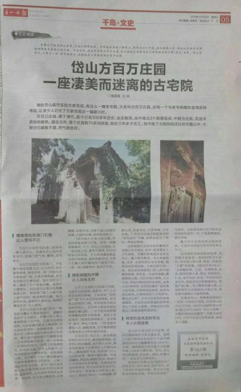 在海岛舟山,能够被民间冠以“庄园”之称的古宅院,只有岱山的方百万庄园。1992年出版的《舟山市志》称方百万庄园为“舟山今存唯一完整的清初民居建筑”,可惜才26年时间,方百万庄园已非常破败,真是令人遗憾。