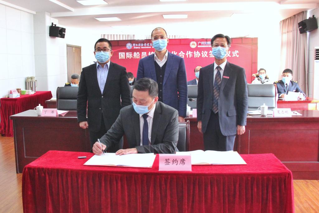 在与会人员的共同见证下,浙海职院与广州海顺船务有限公司共同签署了国际船员培训深化合作协议。