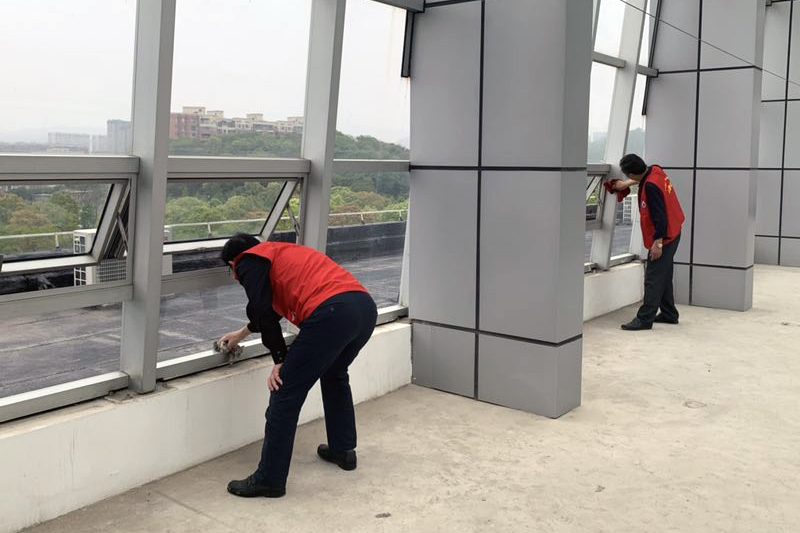 随后,党员志愿者们分工明确,按照各支部的责任区域,拿着抹布、报纸等工具,对行政楼内扶手、窗台、消防设施、及宣传栏窗等进行清洁整理。经过一下午的辛勤劳动,行政楼内窗明几净,环境更加整洁。