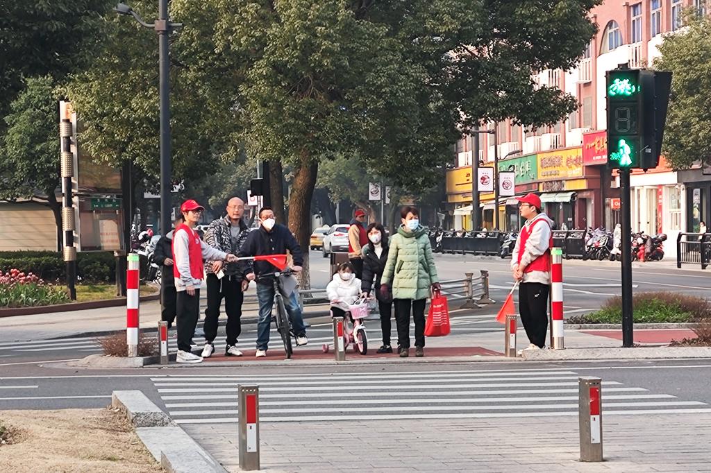 随后,交警组织培训学员们前往现场进行实操。在文明劝导志愿服务中,每个路口的志愿者恪守职责,积极配合交警引导市民维护交通秩序、文明出行,营造畅通、安全、有序的道路交通环境;其余志愿者负责整治交通路口周边二轮车、共享单车等停放秩序。