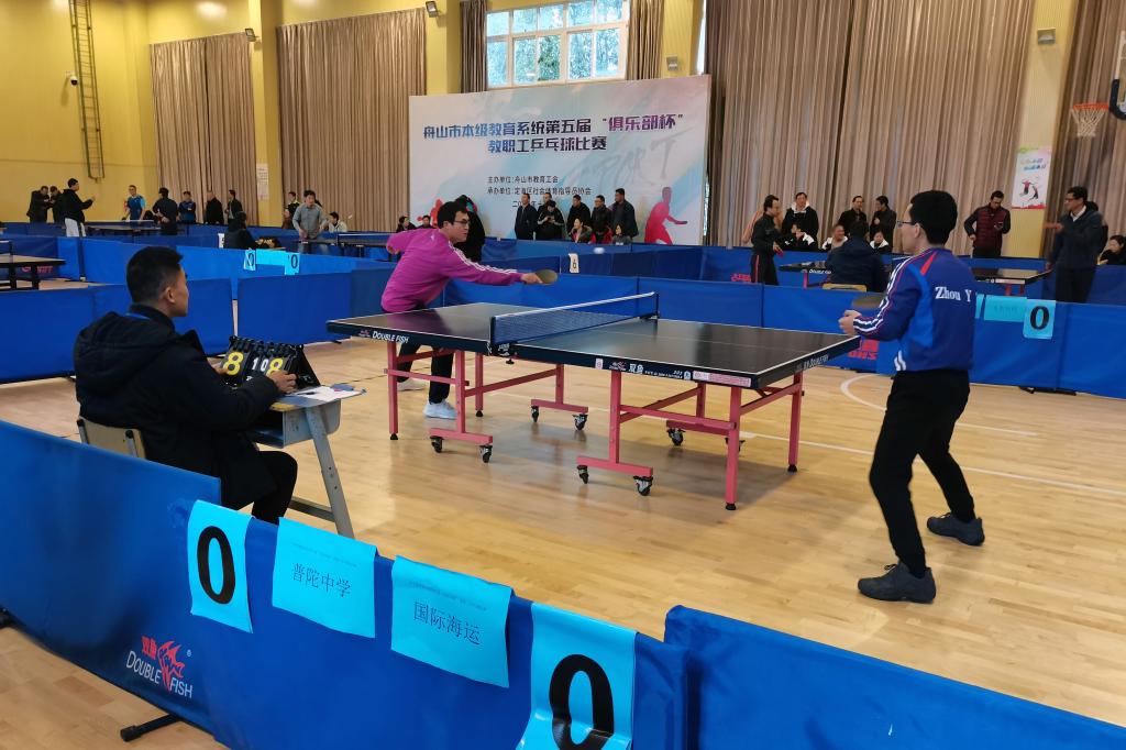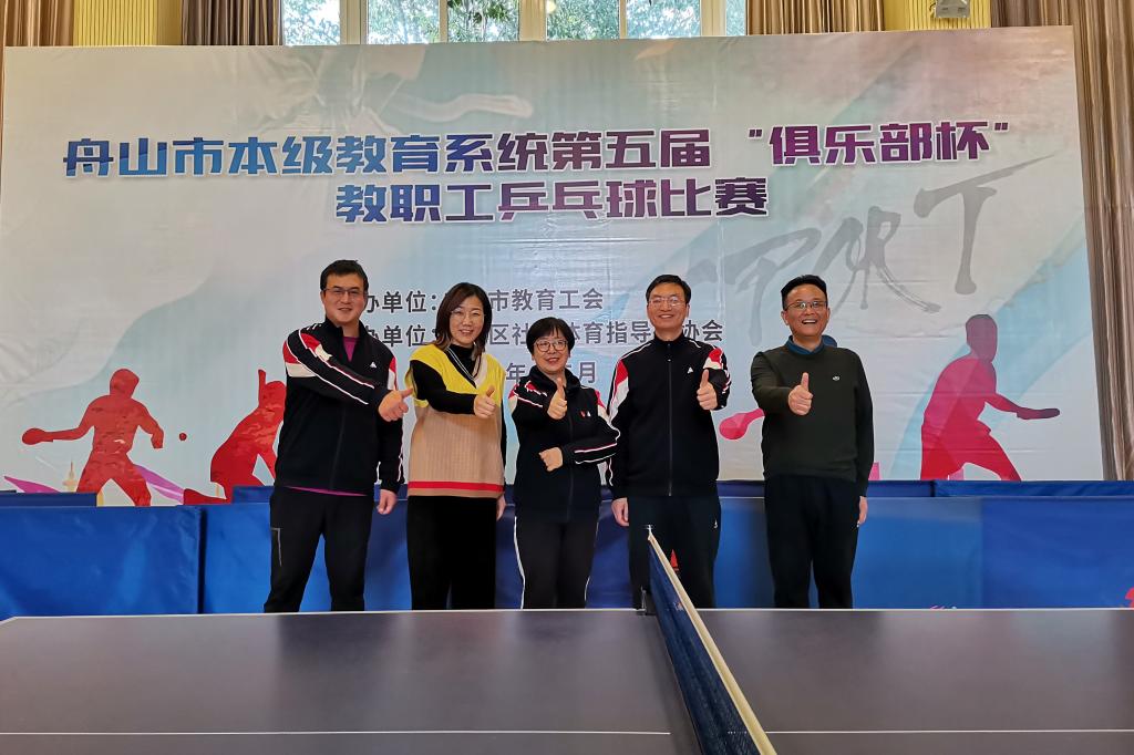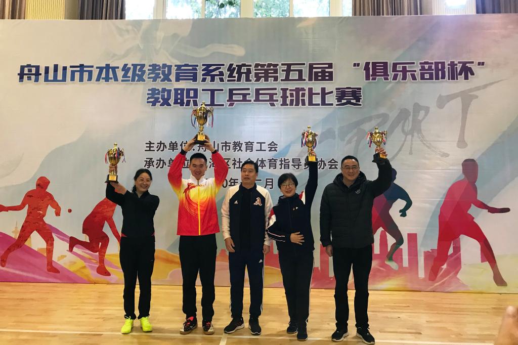 为进一步丰富全市教育系统教职工的精神文化生活,促进教职工的身心健康,增强教育系统的凝聚力和向心力,充分展示广大教职工团结奋进的新时代风采,舟山市教育工会在定海区檀枫小学成功举行2020年全市教育系统第五届“俱乐部杯”教职工乒乓球比赛,我校工会积极组队参加。